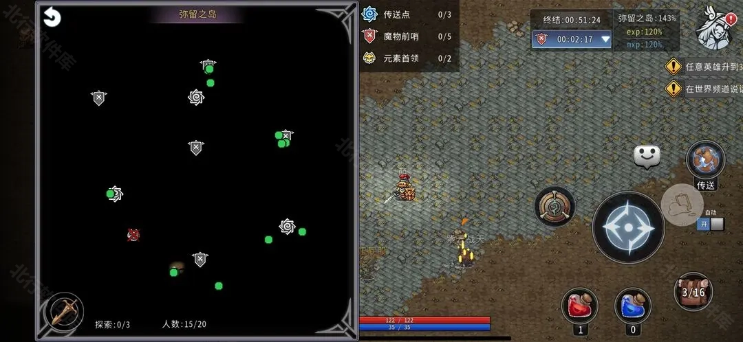 [弥留之岛]前哨每3分钟刷新,未被摧毁的前哨图标两侧有小尖角。元素每20分钟刷新,共水风两只。若两只元素均被击败,房间立即结束并返回主城;否则一小时三十分钟后房间自然结束。[弥留之岛]小怪可能掉落黑魂、白装和绿装。T9精英怪、前哨和元素首领可能掉落蓝装。T9以上前哨和元素首领极低概率掉落果实。