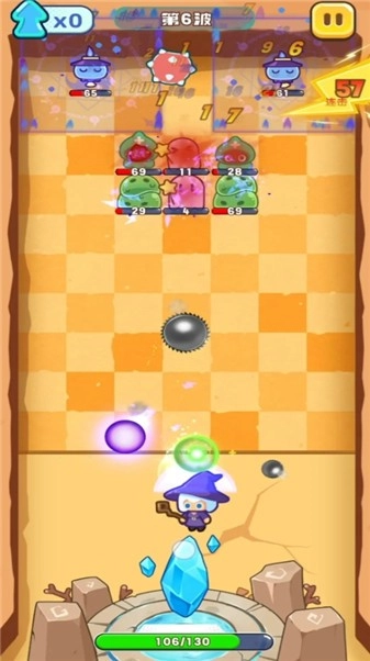 3、竖屏弹珠Roguelike闯关玩法,玩家通过操控角色发射弹珠,来抵御从屏幕上方不断袭来的敌人。