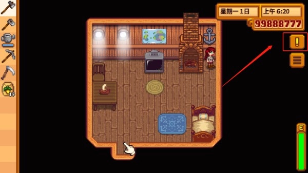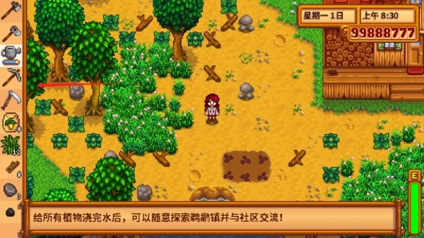 7、走出房间后可以在附近开始开荒,左侧是工具栏。
