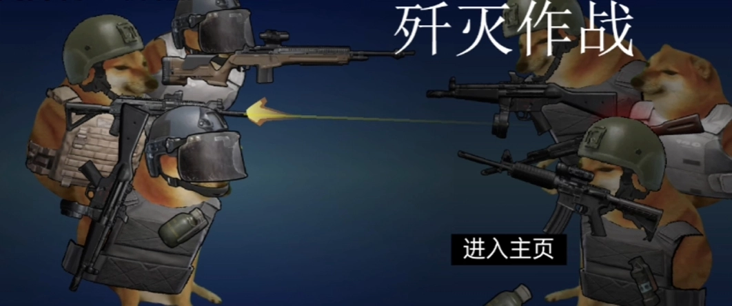 B站UP主“subulx”制作的歼灭作战游戏,借鉴了暗区歼灭战的玩法机制,采用狗头形象与AI展开对抗,游戏内武器种类多样,还包含两种投掷物,是一款2D平面射击游戏。