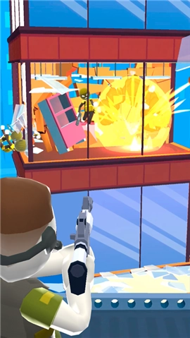 2、进入游戏后,玩家是在一家直升飞机上面,需要消灭楼里面的犯罪份子,点击射击犯罪份子。