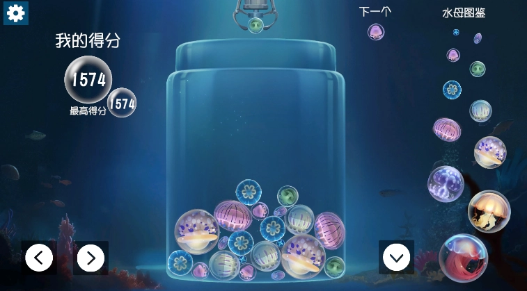 1,放置水母:游戏里会持续掉落不同大小的水母,你要点击或者拖动屏幕,把这些水母放到游戏区域内。