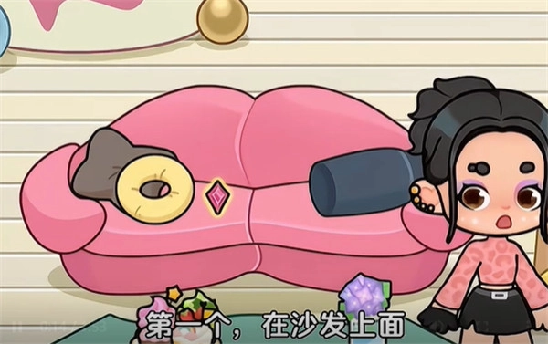 2、第一个在粉红色的沙发上面。