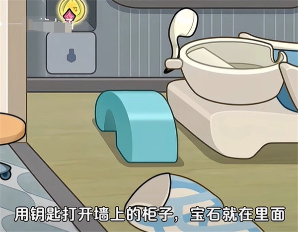 4、第三个地毯下面有一把钥匙,用钥匙打开墙上的柜子,宝石就在里面。