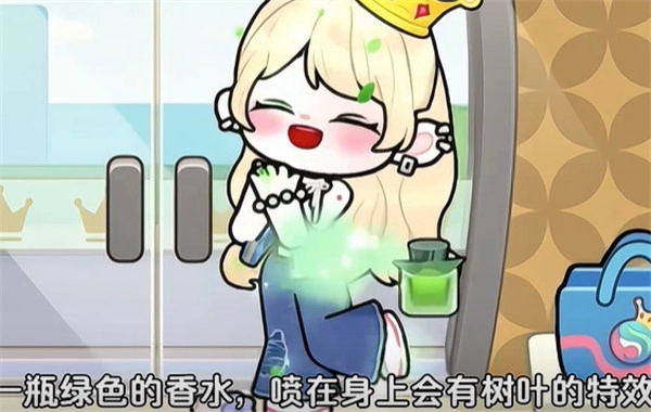 6、机关里面还有一瓶绿色的香水,喷在身上会出现带有绿叶的特效。