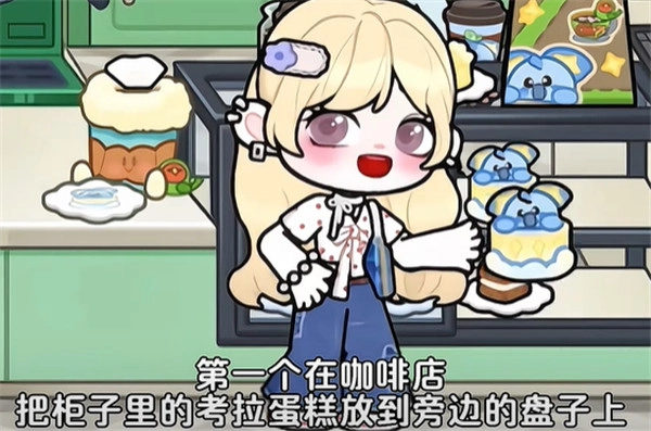 9、第一个在咖啡店,把柜子里面的考拉蛋糕放在旁边的盘子上,纸巾盒会自动打开。