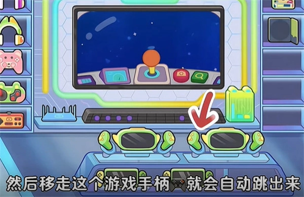 12、最后一个到电子商城,把柜子里的光盘放进光盘播放器。然后移走这个游戏手柄,就会自动跳出来。