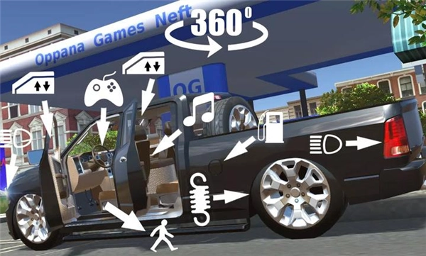 3、拥有有趣的城市及周边地图;设有真实汽车展厅和互动加油站;