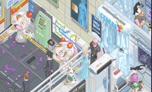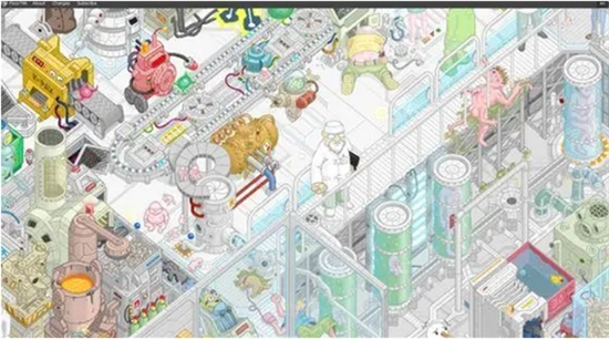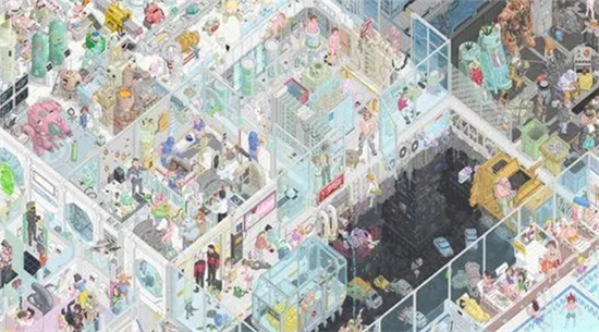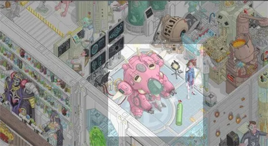 1.场景设定于“巨大空间站的796层”,各种元素——如怪异生物、培养设备、观察的科学家、维修系统的工程师等——都在屏幕边缘动态移动,营造出生机勃勃的环境。