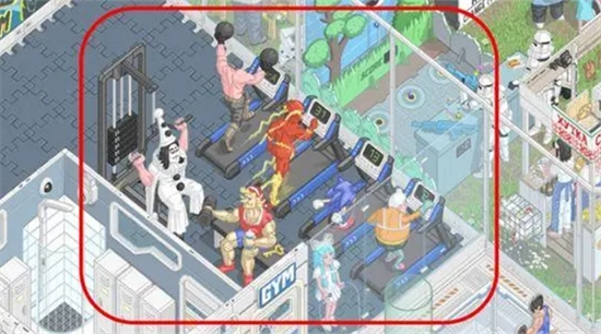 6.在健身房,甚至能看到闪电侠与刺猬索尼克在跑步机上并肩奔跑。