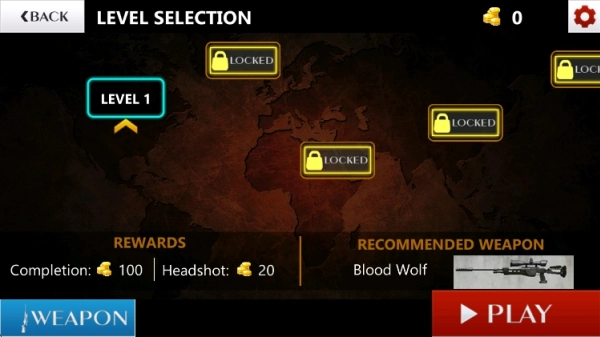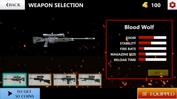 4、使用任务获得的金币可解锁不同属性的狙击步枪,每把武器在威力和稳定性上各有特点。