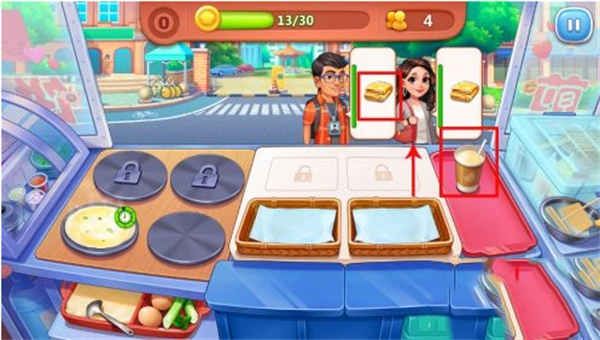 1、开局时顾客走向摊位需要较长时间,这时候可以直接快速点击食材将炉子填满,通常等顾客走到摊位前,煎饼就差不多做好出炉了。