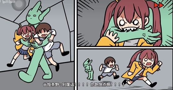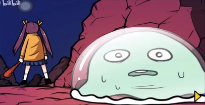 逃生舱到达的行星上,喝水变成史莱姆后,错误地靠近谷恒条野达成。