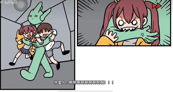 用太空扳手扳开管子,再喂怪物吃外星美食两次,然后获得这张经典CG: