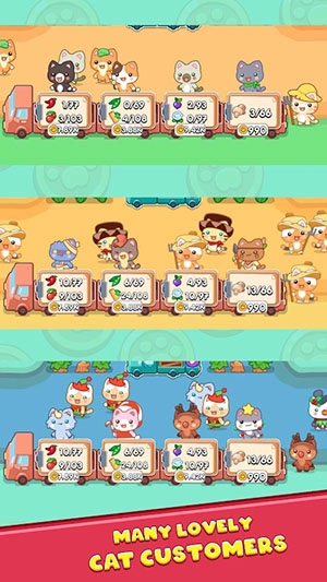 3、丰富的农场经营:在游戏中,玩家需要不定时的打理自己的农场还有种植果实,当果实成熟可以叫猫咪助手去采集。