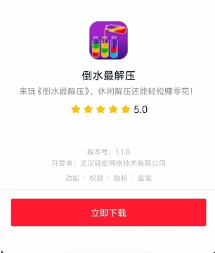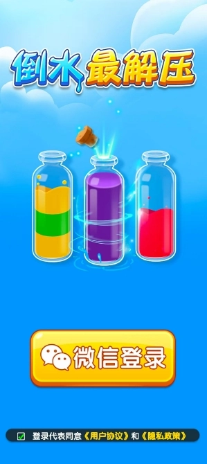 这款名为《倒水最解压》的水瓶倒水排序休闲闯关小游戏,凭借简单却上瘾的玩法收获了玩家的一致好评。游戏里,你只需通过排序倒水完成关卡,就能解锁海量惊喜奖励,轻松赚取零花钱。快叫上小伙伴一起安装体验,开启这场解压又有趣的闯关之旅吧!