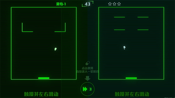 这款游戏没有美化,也不需要美化,通篇漆黑的环境下展示出简约的游戏风格,这款游戏被称之为史上最难的反应类游戏,调节你左右手的协调能力,对,没错,就是玩多了这个游戏你就可以练成传说中的左右互搏之术,从此笑傲江湖,走上人生巅峰!