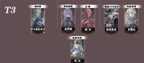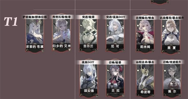 T1级:实力出众,适用于大多数战斗环境,常作为核心角色培养。