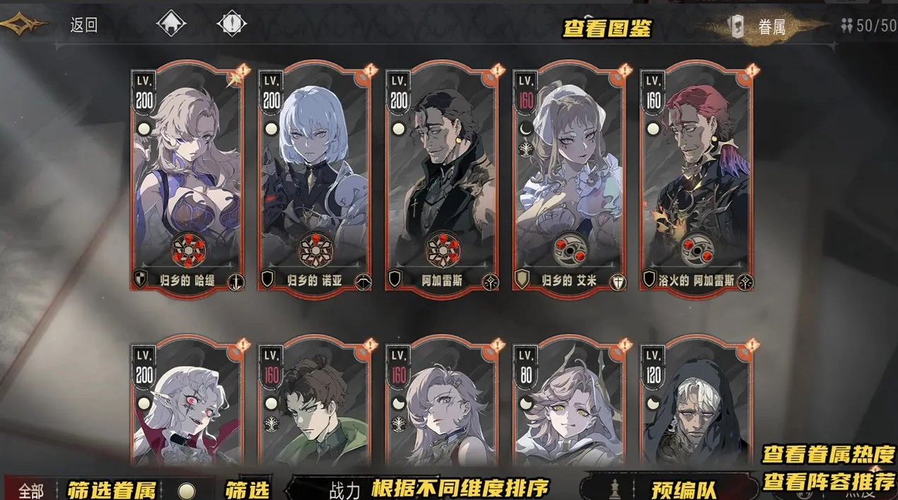 排序:可基于啖魂等级、战力、稀有度、获取时间、等级等维度,对眷属进行排序。