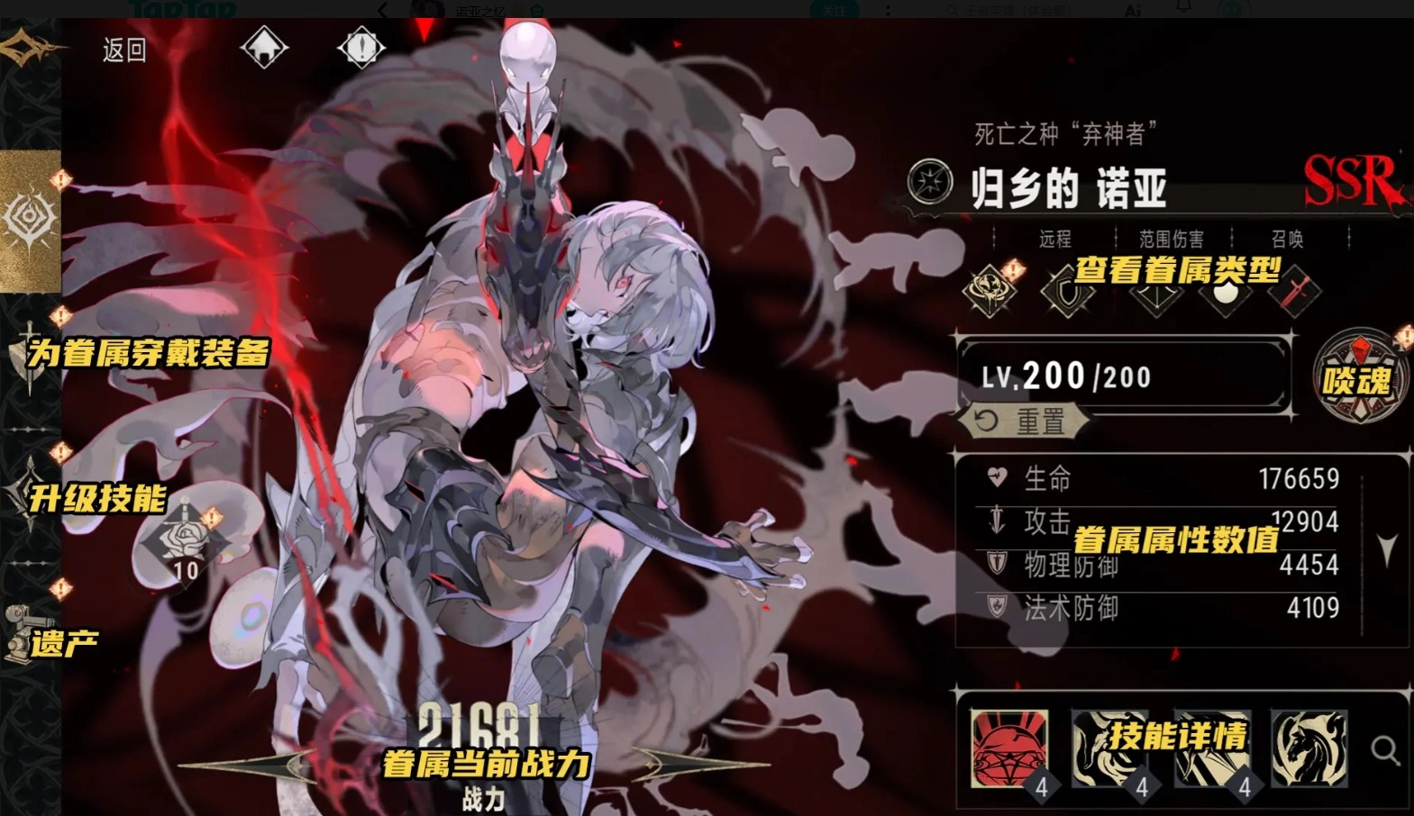 升级技能:可升级技能,提升眷属强度;