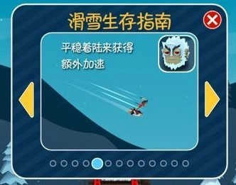 时刻注意后方雪崩的距离。游戏过程中我们需要不断关注后方的雪崩,雪崩距离远近可以从左上方的标志中看出。如果距离很远,标志会很小或者就不会显示,如果雪崩距离很近时,图标便会显得很大,而且略带抖动。