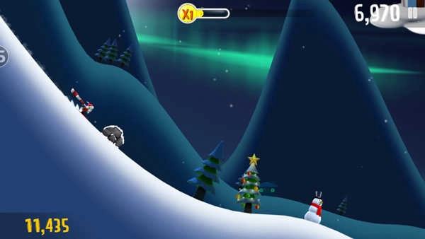 超强的速度感是本作的最大特色,游戏中有很多高速下落的坡道,玩家会一直感受那种速度的快感。游戏的画面虽不复杂但很精致,场景并非一成不变,而是会随着玩家滑雪距离的增加不断变化。