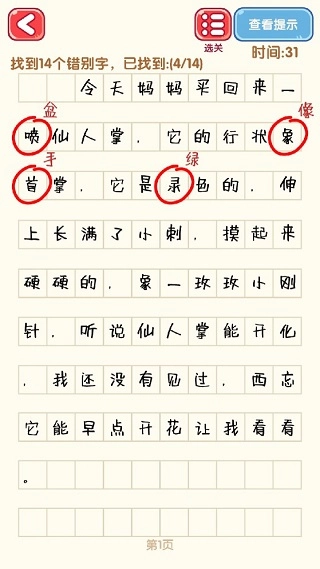 2.作文里面有很多的错别字,玩家需要仔细寻找把它们找出来,并进行修正;
