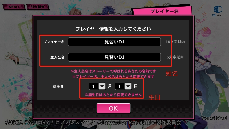 2、然后输入游戏名字以及生日,注意这里点击【ok】后还需要再确认一遍;