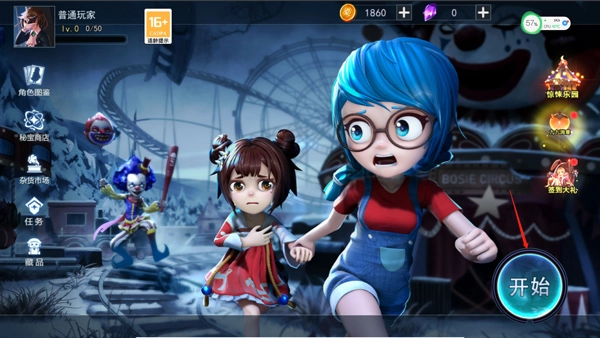 4、再然后就可以进行角色选择了,玩家等级越高解锁的角色就越多,右边还可以添加道具,准备好了就可以点击开始游戏。