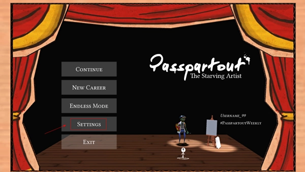 1、启动饥饿派画家手机版,点击首页的“settings”选项进入设置界面;