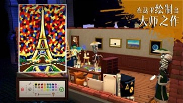 游戏里的每一种场景及画画方式,都由玩家亲自操作,可通过NPC来购买一些画纸画笔等等。