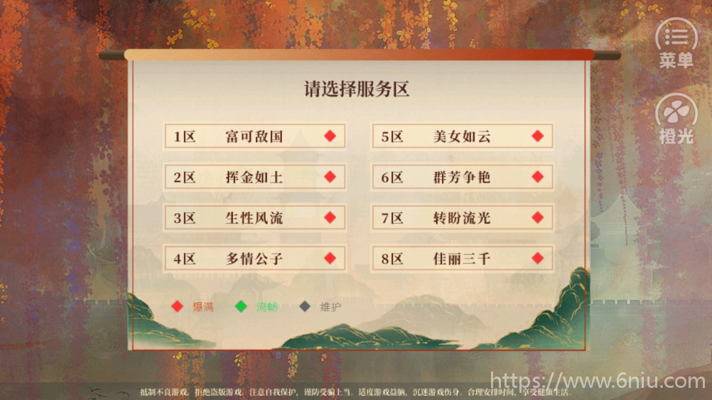 1、打开游戏后,第一步是挑选你心仪的游戏区。