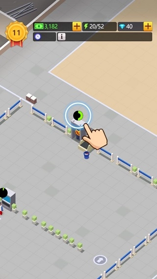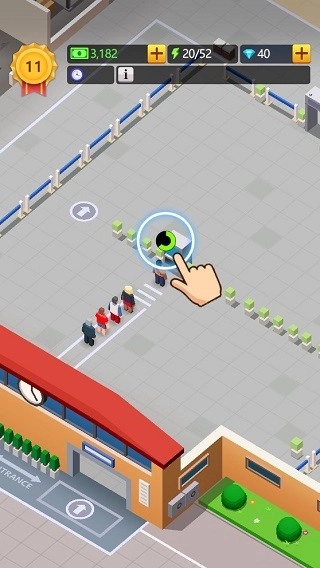 1、运营一座火车站的第一步是要吸引更多的旅客,点击屏幕位置处,打开进站广场,开始为旅客朋友们建造一个快速下客点。