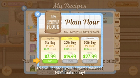 3、如果材料不足,那么是时候去采购更多的面粉了。按下“+”按钮,增加你的库存。