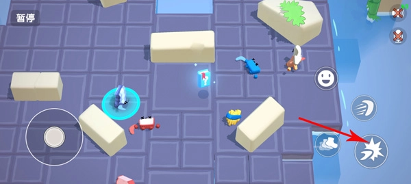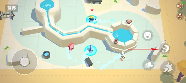 1、进入游戏后,通过滑动左下角的摇杆来操控角色移动;
