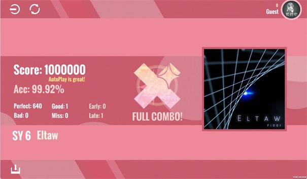 1、简约的游戏画面,各种颜色不同的谱面,带给玩家别样的视觉效果感受。