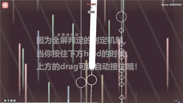 3、游戏为全屏判定,接住长条后,只要手保持按住的状态,怎么移动都不会断链。