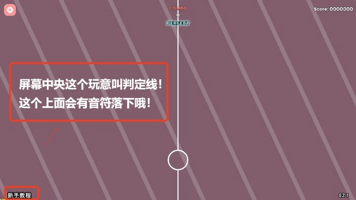 1、打开游戏,屏幕中间的线叫做判定线,会有音符落在线上。