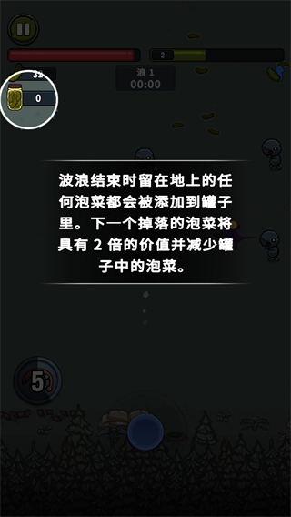 2、波浪结束时留在地上的任何泡菜都会被添加到罐子里。下一个掉落的泡菜将有2倍的价值并减少罐子中的泡菜。