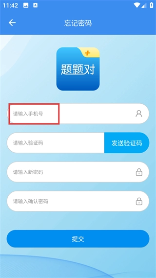 2、在忘记密码页面输入手机号码,点击【发送验证码】按钮。