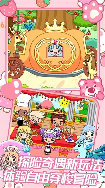 1、孩子们可以在托卡小镇中自由探索,与不同的角色交流,触发各种有趣的事件。