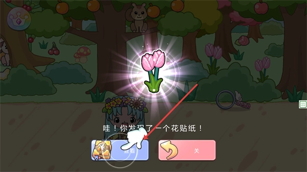 4、在贴纸收集界面查看已收集的粉色郁金香贴纸,完成收集操作。