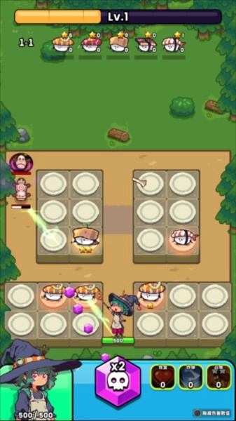 2、合理布局搭配不同的寿司,解锁不同的关卡开始战斗