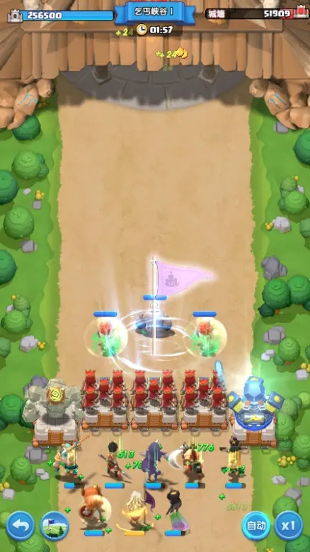 因为领地中如果清怪速度够快,怪物走不到面前,其他召唤物只能干看着,斯巴达切换半自动手动进场的话能在适当时机阻挡跑下来的怪物,也能在怪物被清除后跳下去攻击建筑;