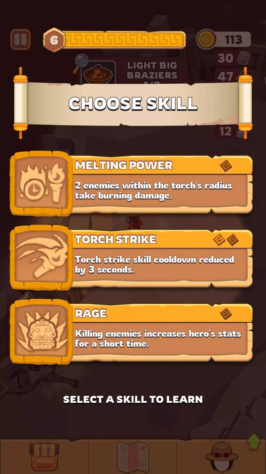 在战斗中升级以解锁新技能和助推器!使用技能和特权增强你的英雄,使你更快、更强或更坚韧,帮助你在古墓中生存并获胜!