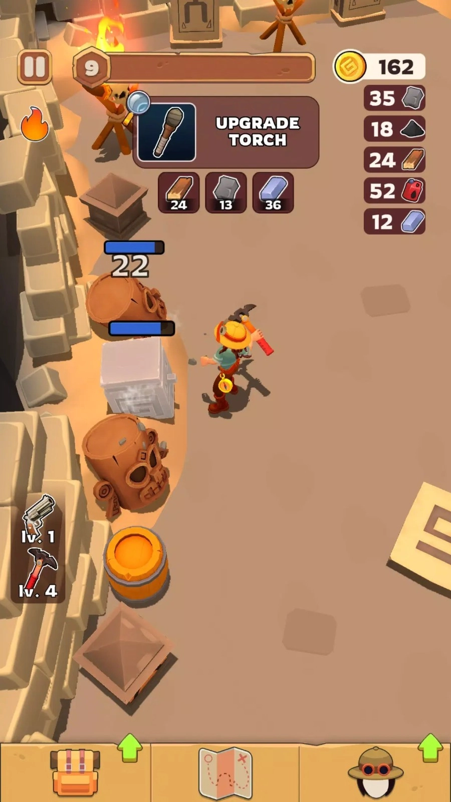 使用资源在工作台上制作更好的镐、火把和武器。每个新物品都可以帮助您深入古墓!