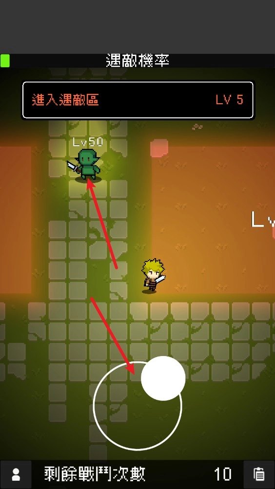 2、进入场景后,我们通过下方的虚拟摇杆进行移动,场景中有着许多不同等级的怪物,选择合适的等级去进行挑战。