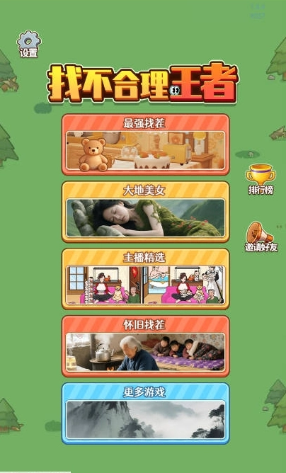 《找不合理王者》是一款充满欢乐趣味的游戏,玩家能欣赏到大量精心设计的图片与画面,通过观察那些不合理、不合逻辑的细节来轻松寻找线索。游戏拥有丰富多样的关卡和贴心提示,系统玩法设计出色,还能帮助玩家放松大脑,整体玩法十分有趣,喜欢找不同类游戏的玩家千万别错过!