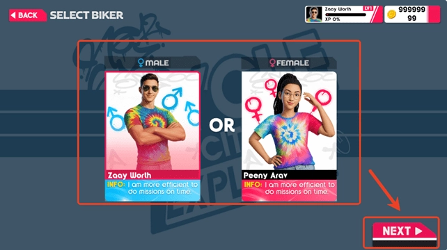 2.选择角色后点击“NEXT”
