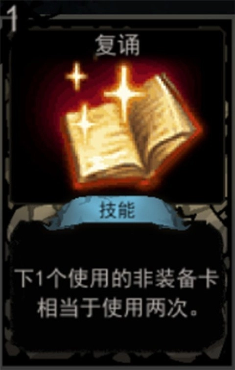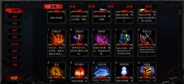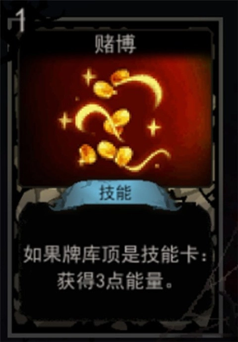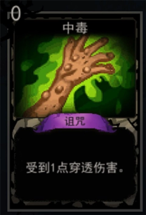 这款游戏的卡牌分为五种类型,攻打、防备、技巧、装备、诅咒,使用卡牌会消耗能量,消耗的能量数可以帮助在左上角看到,卡牌上方是代表品德的边框,而卡牌描写中的黄色字体是要害词,拥有着特殊的效果。